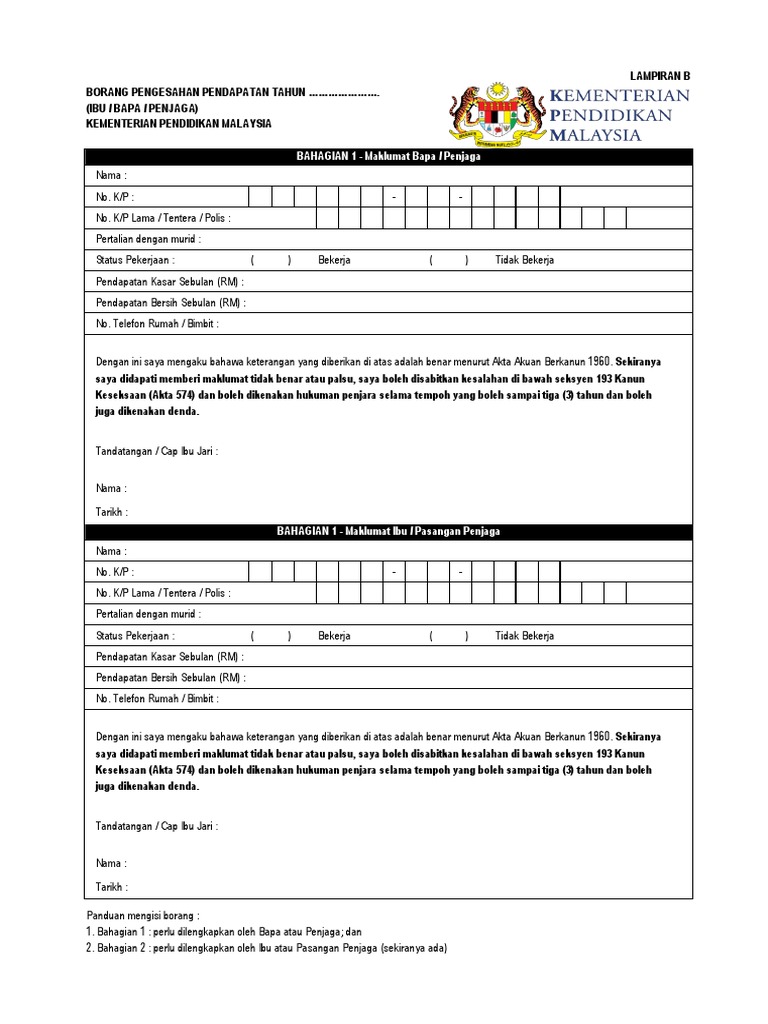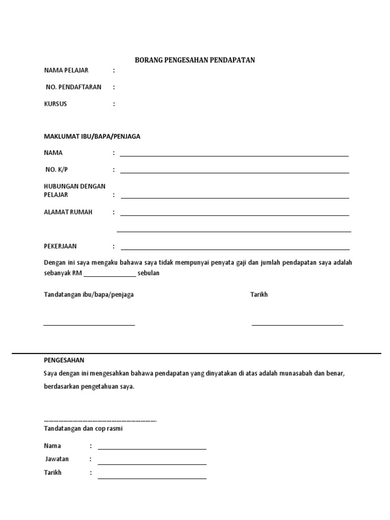 Borang Pengesahan Pendapatan Ibu Bapa Pdf