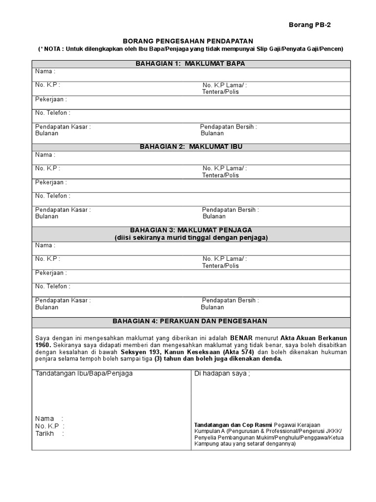 27 12 2018 Borang Pb2 Borang Pengesahan Pendapatan Pdf Pdf